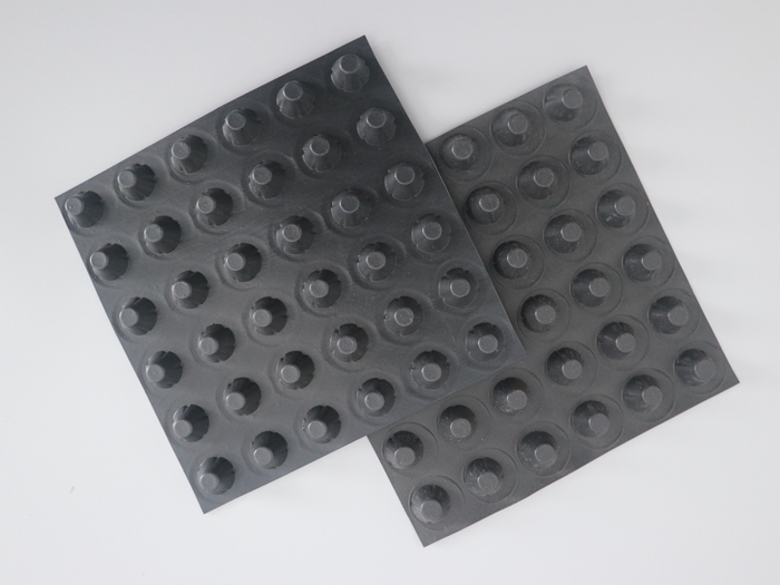 采用擠出吸附等工藝壓型成封閉突起的柱狀、半錐狀殼體,形成一種膜、殼連續(xù),有立體空間和一定支撐剛度,液體和氣體可以在其內(nèi)流動(dòng)排泄的板材。是一種潛在功能很多的功能性材料,使用中很方便地構(gòu)筑出架空層,形成排水、排氣通道,達(dá)到隔音、隔振的功能。在土木建筑工程領(lǐng)域中可廣泛用于建筑屋面系統(tǒng)的層內(nèi)架空、種植屋面的排水透氣,建筑地下室防水系統(tǒng)的排水保護(hù),室內(nèi)地面的防潮隔熱保護(hù),公路鐵路隧道的排水保護(hù)等。在城市土地、空間、材料資源日益珍貴的今天,塑料排水板提供有價(jià)值的選擇。