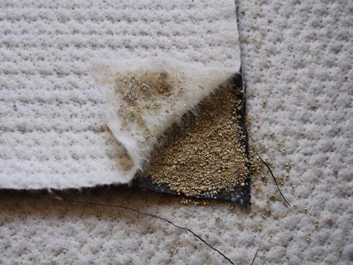 膨潤防水毯是一種用于人工湖泊水景、垃圾填埋場、地下車庫、樓花園、水池、油庫化學品堆場等防滲漏的土工合成材料,它是由高膨脹性的鈉基膨潤土填充在特制的復合土工布和無紡布之間,用針刺法制成的膨潤土防滲墊可形成許多小的纖維空間,是膨潤土顆粒不能像一個方向流動,遇水時在墊內形成均勻高密度的膠狀防水層,有效的防止水的滲漏。膨潤土防水毯按生產工藝可分為:針刺法鈉基膨潤土防水毯、針刺覆膜法鈉基膨潤土防水毯以膠粘法鈉基膨潤土防水毯。 針刺覆膜法鈉基膨潤土防水毯,是在針刺鈉基膨潤土防水毯的非織造土工布的外表面上復合一層高密度聚乙烯土工膜。